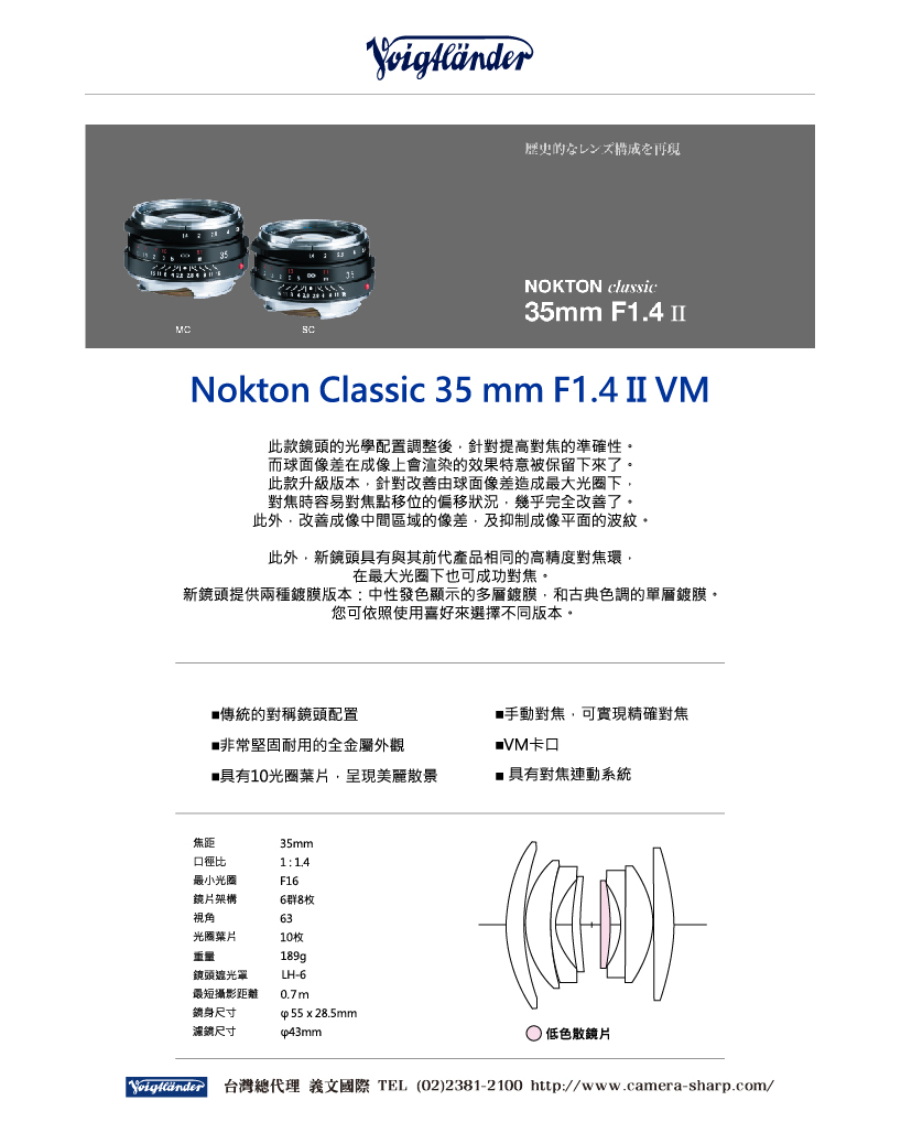 NOKTON經典35mm F1.4 II VM升級後對數位相機使用者更加友善。